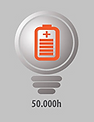 Dependendo do modelo, as lâmpadas LED têm uma vida útil que variam entre 25.000 horas podendo chegar a mais de 50.000 horas (uma lâmpada ligada em promédio 8 horas diárias tem uma vida mediana de 17 anos).
